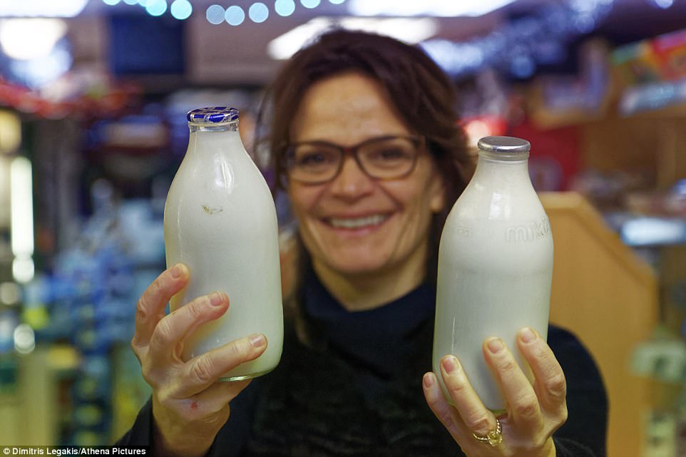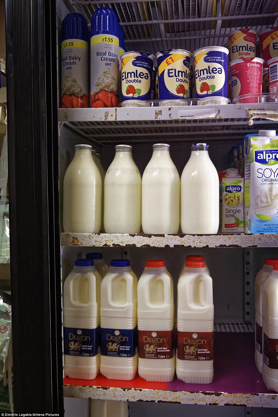 Một số chai thủy tinh sữa tại cửa hàng tiện lợi ở ngôi làng Aberporth, phía Tây xứ Wales.