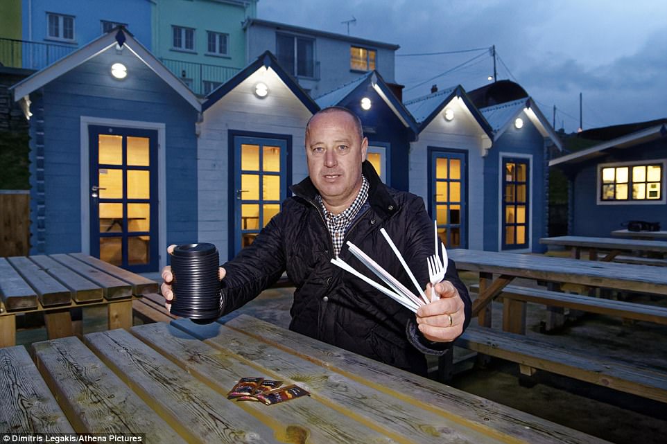 Gethin James, chủ của một quán cà phê cho biết không có đồ dùng nào làm được làm từ nhựa trong cửa hàng của ông.