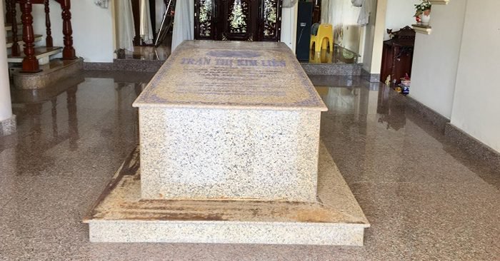 Gia đình đã thuê người cắt gạch lót sàn và đục lớp bê-tông để đào mồ chôn Liên, ngay dưới sàn phòng khách. Phía trên, một ngôi mộ lớn bằng cẩm thạch được xây lên. Họ cũng dựng bàn thờ cùng một tấm ảnh lớn để nhang khói.
