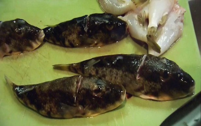 Ngư dân Ji sống ở quận Chongming, thành phố Thượng Hải ở phía Đông Trung Quốc đã chế biến món ăn từ cá nóc cho người bạn của mình là Gao Zengming.