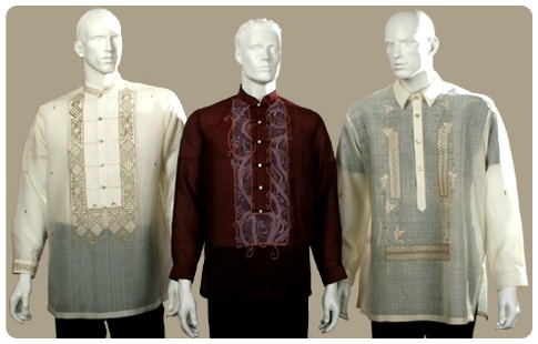 Barong của nam gồm áo sơ mi tay dài, làm từ chất liệu nhẹ, mềm, không thắt cà vạt. Áo được may khá đơn giản với ống tay dài rộng, hai bên sườn có xẻ một chút, độ dài của chiếc áo đến phần đùi của người mặc. Barong thường được may kiểu cách bởi các họa tiết hình họa miêu tả thiên nhiên và nguồn năng lượng mặt trời.
