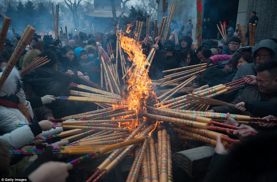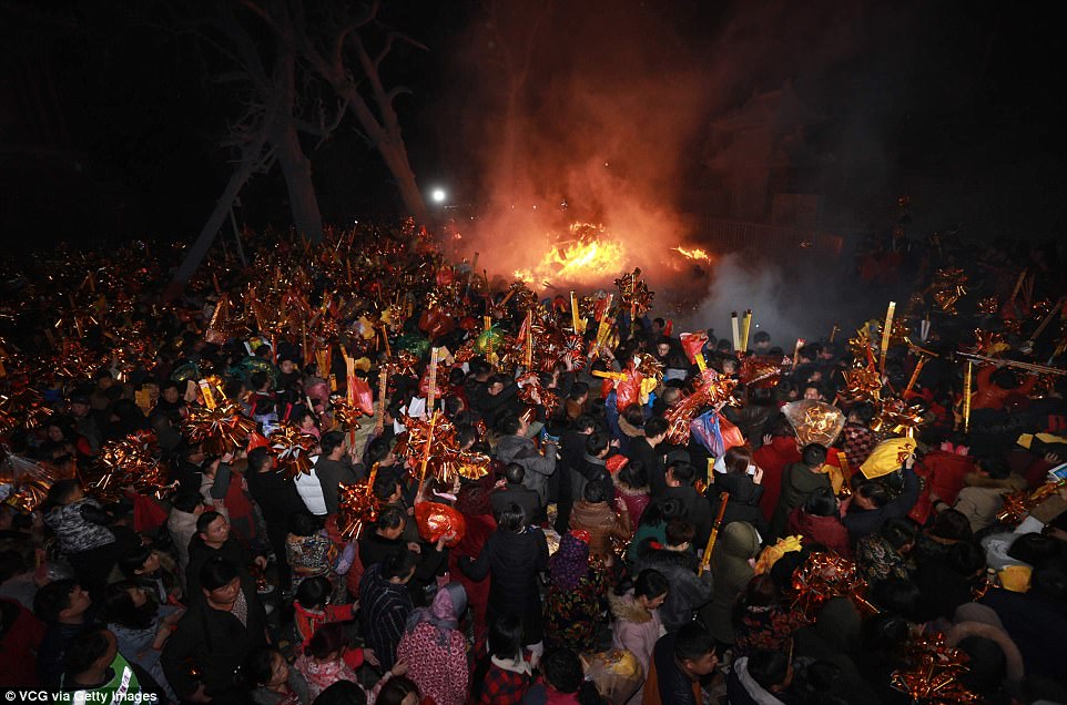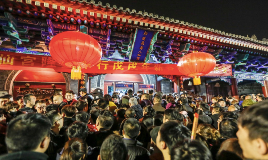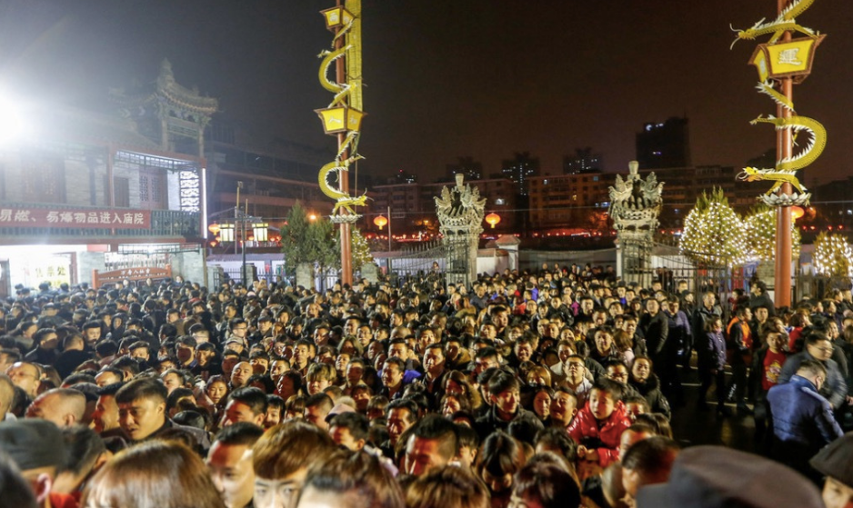 Người dân chen chúc đi dâng hương ở đền Chu Khẩu, tỉnh Hà Nam, Trung Quốc.