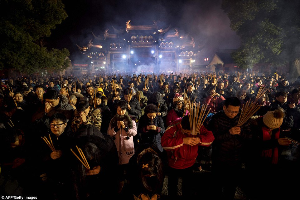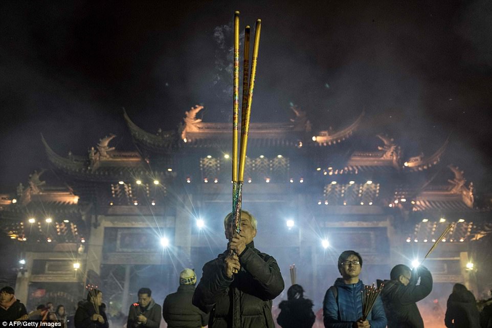 Ngay sau giao thừa, người dân Thượng Hải, Trung Quốc đã tới đền Longhua để thắp hương, cầu nguyện.