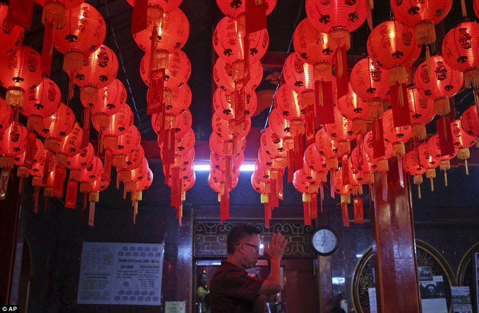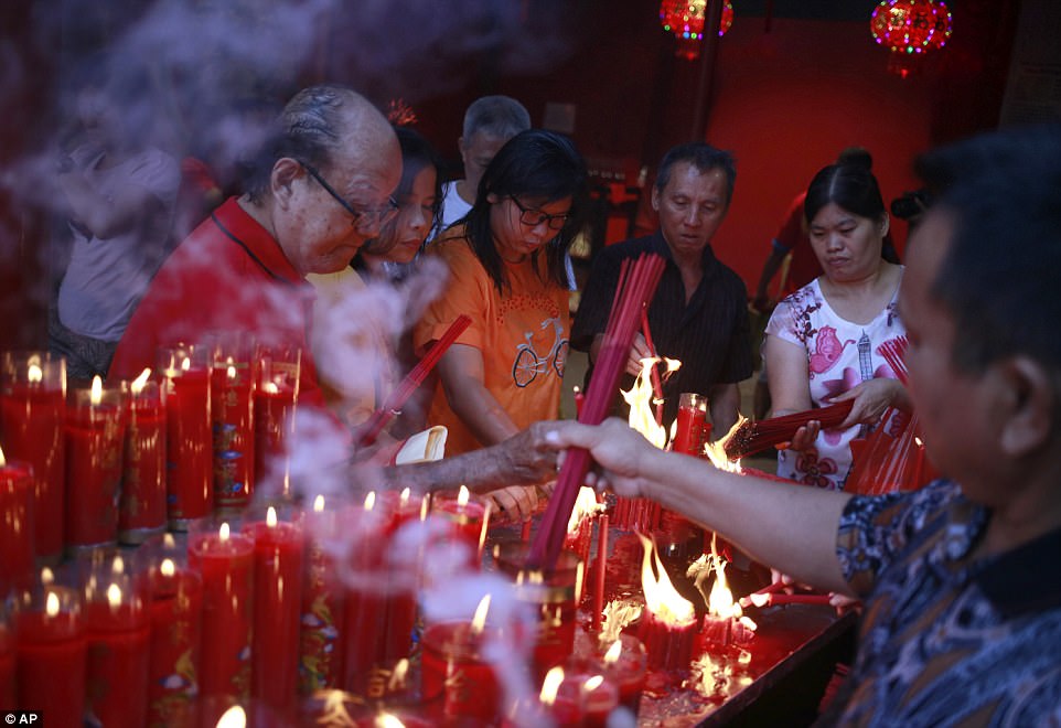 Cảnh dâng hương, lễ chùa ngày đầu năm ở Indonesia.