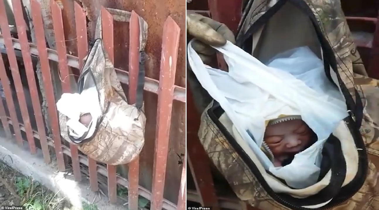 Em bé được đặt trong túi nilon đựng rác. Ảnh: Viral Press