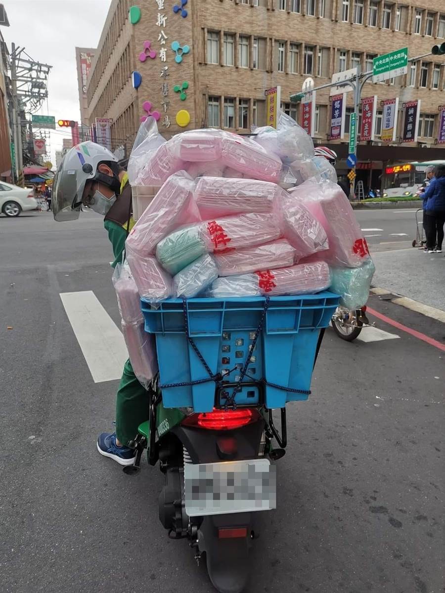 Trong một hội nhóm trên mạng xã hội Facebook, người dùng còn chia sẻ hình ảnh của một nhân viên giao hàng ở Đài Loan đang đi giao hàng chục túi khẩu trang trong trạng thái vô cùng lo lắng.