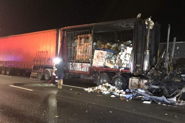 Xe tải chở giấy vệ sinh bị cháy ở Úc.