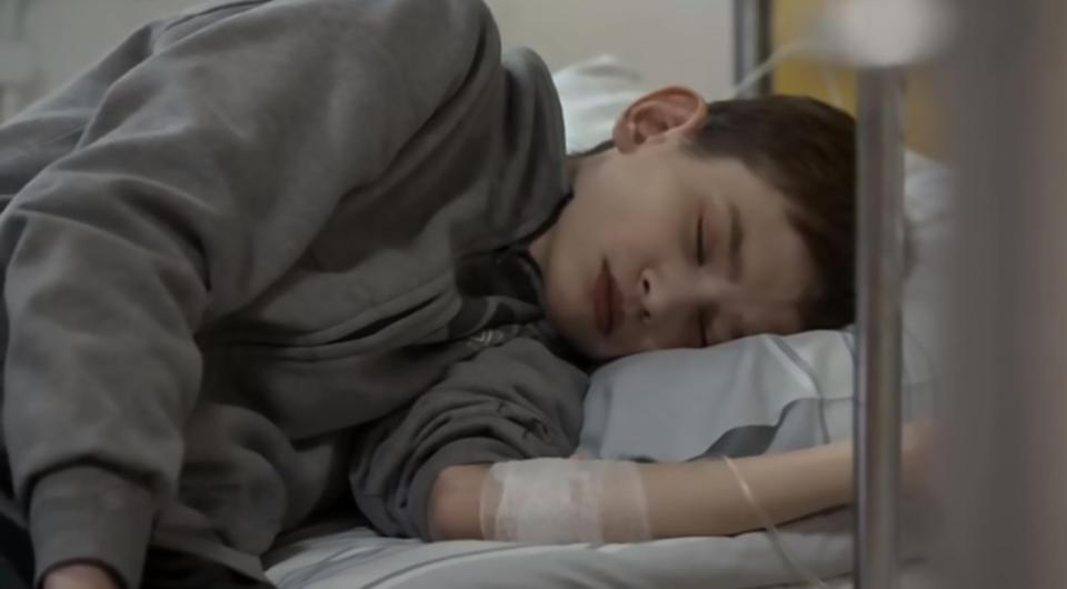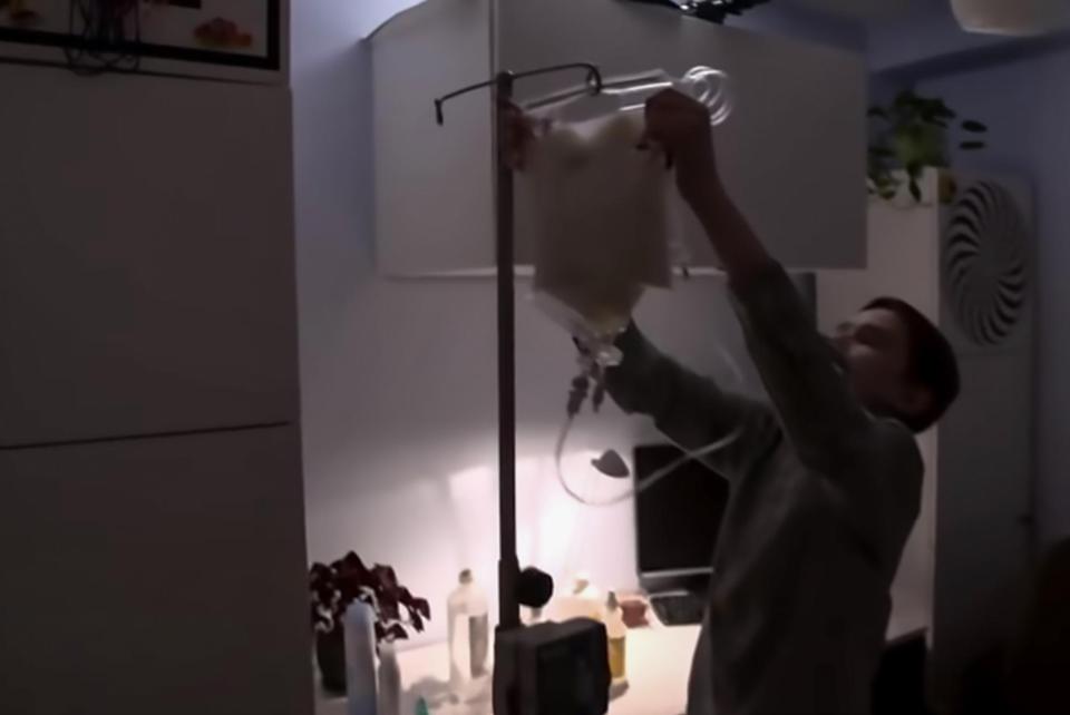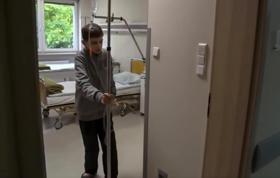 Tomasz phải truyền nước hàng giờ do tình trạng của mình.