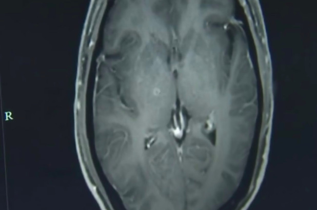 Ảnh chụp cắt não cho thấy não của người đàn ông bị nhiễm sán dây ký sinh, khiến ông này bị co giật và mất ý thức.