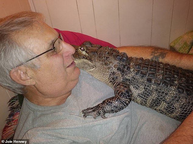 Ông Joie Henney, 65 tuổi, ở Strinestown, Pennsylvania, sống với hai cá sấu, một trong số đó là động vật hỗ trợ cảm xúc dài 4,5 mét, có tên Wally.