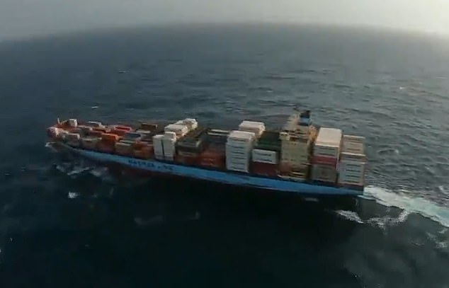 Thuyền viên trên tàu đã ném phao cho người đàn ông bám lấy.