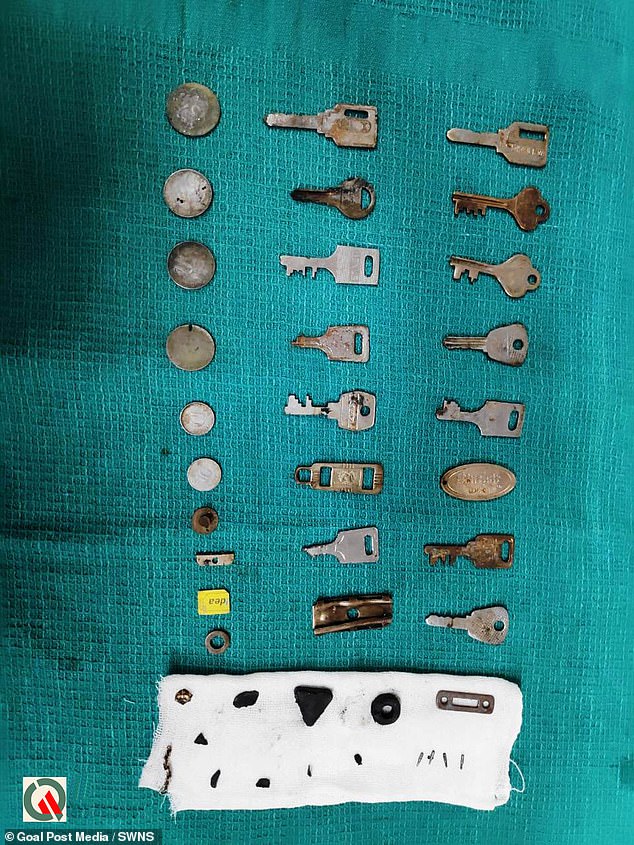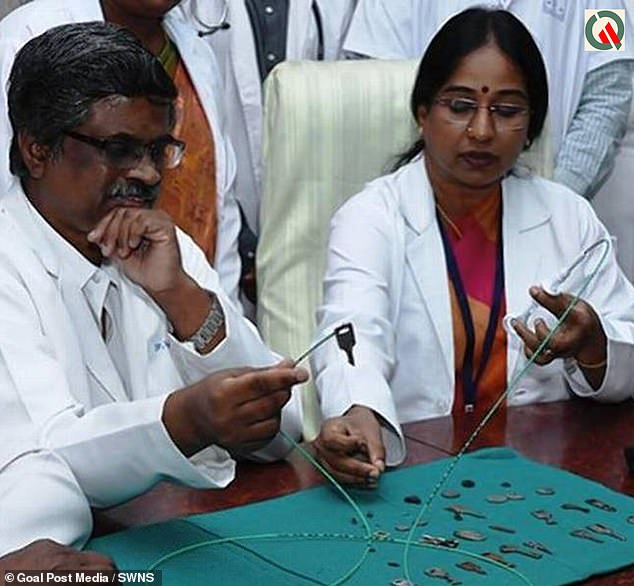 Để loại bỏ hết các vật thể trong dạ dày ông Jayakumar, các bác sĩ cần phải phẫu thuật tới hai lần và mỗi ca phẫu thuật kéo dài 45 phút. Trong ca phẫu thuật đầu tiên, các bác sĩ gắp ra được 22 miếng kim loại và thêm 18 vật thể khác trong lần tiếp theo. 40 vật kim loại bao gồm chìa khóa, tiền xu và thẻ sim điện thoại. Không chỉ vậy, bác sĩ còn gắp ra được một lưỡi mài bút chì và một mẩu nam châm. Thứ nhỏ nhất dài khoảng 2cm và một số mảnh kim loại dính vào mẩu nam châm khiến ca phẫu thuật càng thêm khó khăn.