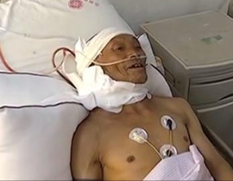 Khối u quá lớn nên ông Triệu gặp rất nhiều khó khăn trong việc di chuyển. Vì vậy, con trai ông đã tìm đến sự giúp đỡ của bác sĩ Đồng Thế Hương ở bệnh viện Ung Bướu tỉnh Quý Châu.