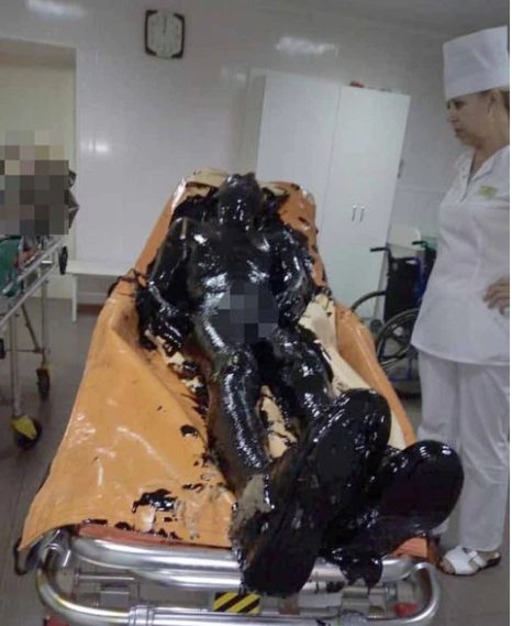 Những bức ảnh được chụp lại cho thấy nạn nhân đang quằn quại đau đớn trong khi toàn bộ cơ thể anh ta bị bao bọc bởi lớp hắc ín đen bóng. Các y bác sĩ tại bệnh viện chia sẻ với báo MailOnline rằng họ đã mất hàng giờ sử dụng dao cạo và các thiết bị y tế để loại bỏ các mảng lớn nhựa đường dính chặt vào cơ thể nạn nhân.