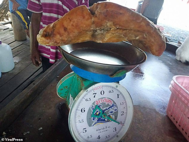 Cảm thấy nghi ngờ, anh Somsak mang tảng đá nặng hơn 2 kg về nhà với hi vọng nó chính là một khối long diên hương có thể dùng để “đổi đời”. Long diên hương, theo tiếng Hán có nghĩa là “nước bọt của rồng”, là bãi nôn của cá voi nhà táng và thường được dùng trong quy trình sản xuất nước hoa.