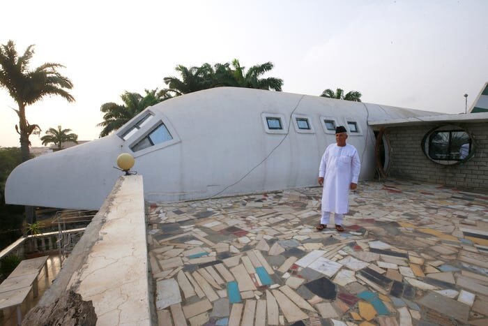 Tọa lạc tại thủ đô Abuja của Nigeria, căn nhà “máy bay” độc đáo này là mái ấm của ông Jammal cùng vợ Liza và 6 người con. Người chồng tâm lý bắt tay vào việc xây dựng ngôi nhà từ năm 1999. Ông cho biết đây là một công trình bê tông kiên cố mô phỏng theo hình dáng một chiếc máy bay thực thụ, phần đuôi mang hai tone màu xanh lá cây - trắng nhã nhặn của lá cờ Nigeria, bên còn lại là họa tiết cây tuyết tùng Lebanon.