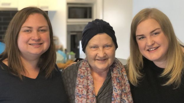 Kerry Robertson chụp ảnh cùng hai con gái là Jacqui (trái) và Nicole (phải)