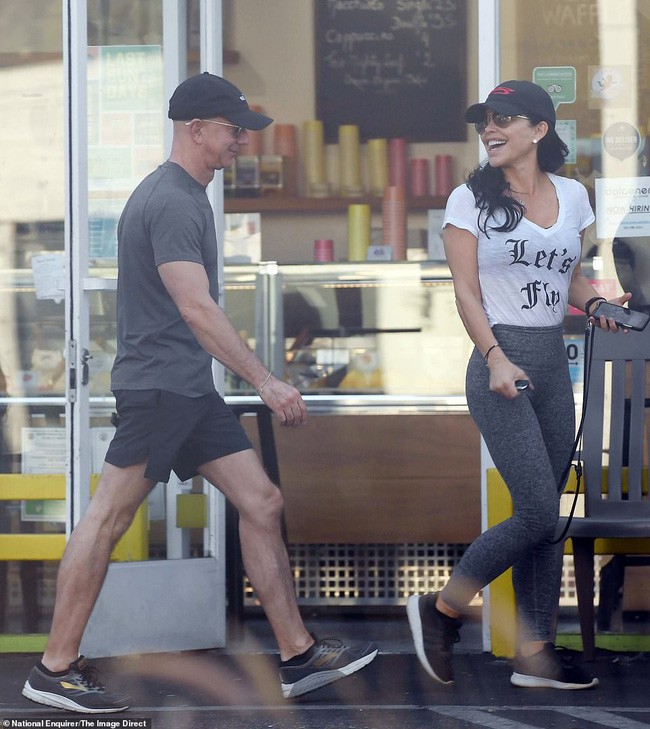 Cả hai ăn mặc đơn giản, khỏe khoắn. Người tình của tỷ phú Bezos khoe thân hình nóng bỏng trong bộ đồ bó sát còn ông chủ Amazon mặc áo phông, đội mũi lưỡi trai và đeo kính râm.