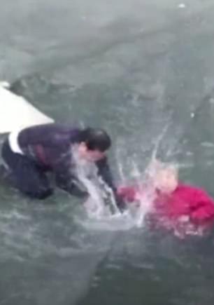 Khoảnh khắc ấm áp tình người này được ghi lại khi một người đi bộ liều mạng cứu bà cụ bị rơi xuống con sông băng ở Bảo Định, Hà Bắc, Trung Quốc. Vào khoảng 8h sáng 26/12 , ông Shi Lei 54 tuổi, đã dùng tay không phá vỡ mặt băng để kéo bà Zhai, 73 tuổi, khỏi dòng nước lạnh.