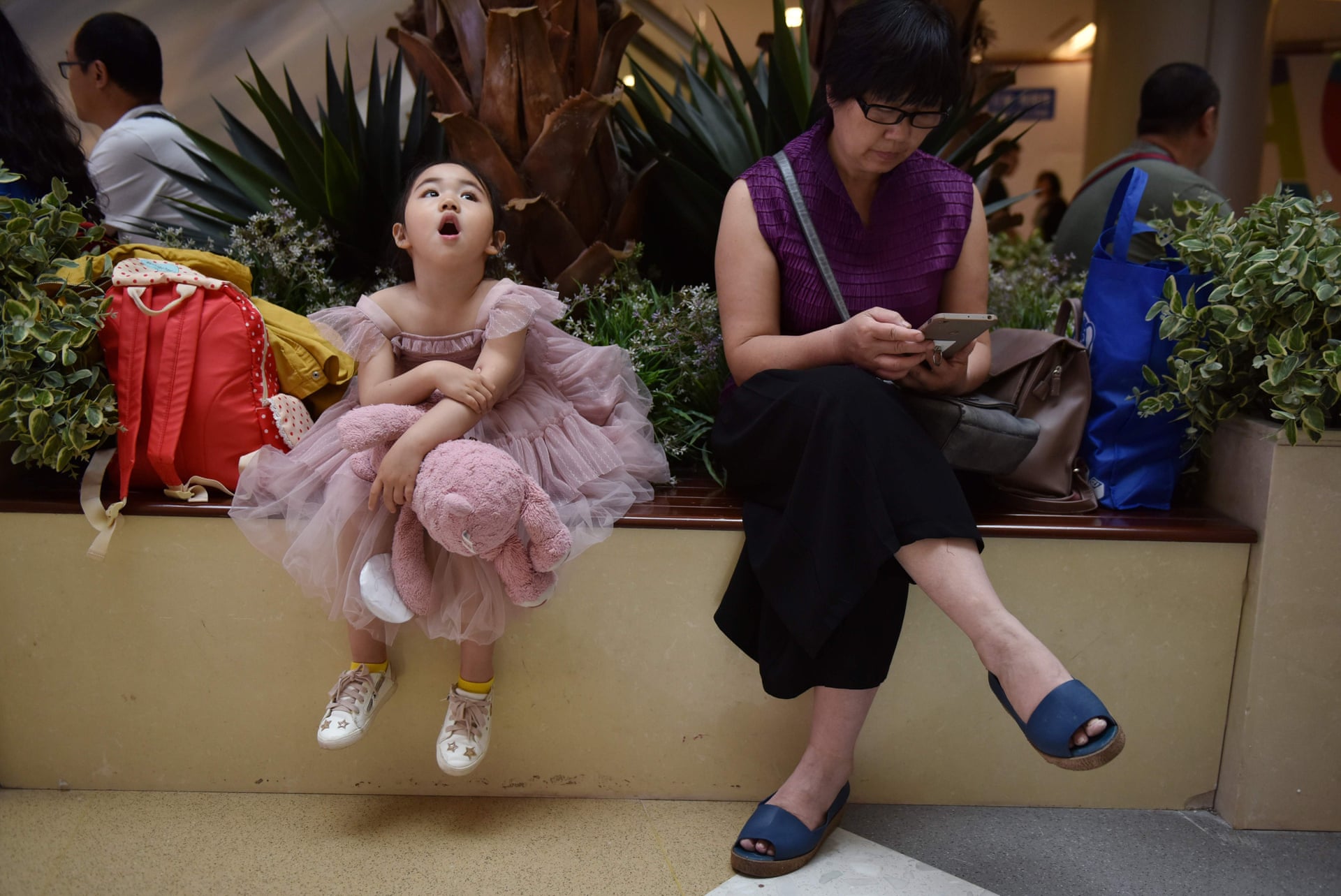 Bé gái cùng người thân trong gia đình đang chờ đến lượt để trình diễn.
