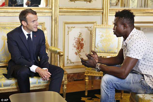 Gassama gặp gỡ Tổng thống Pháp Macron tại Điện Elysee.