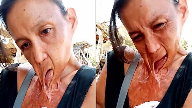 Chị Leonor Niusa sống với đôi môi dính chặt xuống phần ngực suốt 15 năm qua.