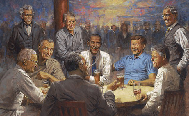 Bức tranh có tên “Câu lạc bộ Cộng hòa” do họa sĩ Andy Thomas sáng tác. Chính họa sĩ Andy Thomas cũng là người đã vẽ bức Câu lạc bộ Dân chủ trong thời kỳ tại nhiệm của cựu Tổng thống Brack Obama.