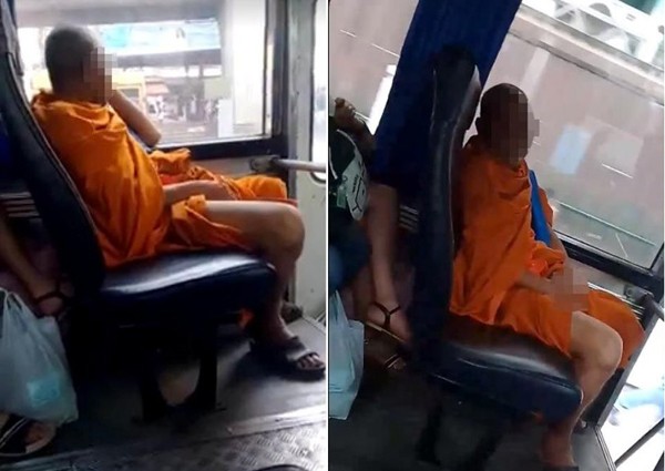 Nhà sư Thái Lan “tự sướng” ngay trên xe buýt. Ảnh Asiaone