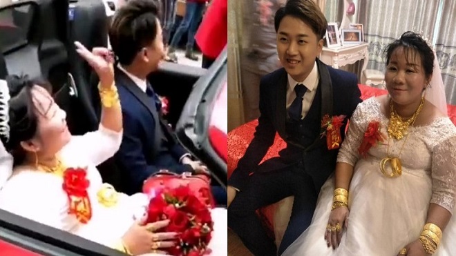 Trong những hình ảnh ghi lại được, có thể thấy trên người cô dâu đeo rất nhiều đồ trang sức.