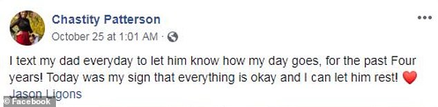 Vừa bàng hoàng vừa xúc động, Chastity đã chia sẻ kỷ niệm về cuộc gặp gỡ tình cờ này lên Facebook. Bài viết của cô đã thu hút hơn 265.000 lượt chia sẻ. Cô gái viết: “Suốt 4 năm qua, mỗi ngày tôi đều nhắn tin cho bố để kể cho ông nghe những chuyện vụn vặt thường ngày của mình. Có lẽ hôm nay là một ngày đặc biệt, tôi nên để bố yên nghỉ trong ký ức của mình!”.