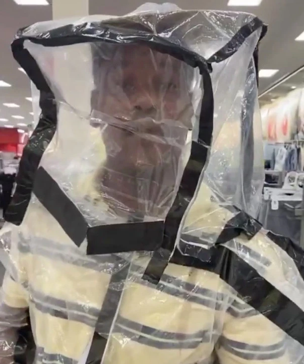 Trong một video được đăng lên mạng, người đàn ông được nghe giải thích cho một khách hàng về cách anh ta tự làm bộ đồ. Dường như có một khe nhỏ trên đầu - nhưng nó không rõ liệu có lỗ nào khác trong bộ đồ bảo hộ cho phép người đàn ông thở không.