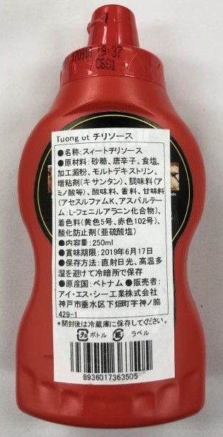 Theo kết quả phân tích của Hiệp hội Vệ sinh thực phẩm Tokyo thuộc Viện Nghiên cứu công nghệ thực phẩm Tokyo, hàm lượng axit benzoic trong tương ớt Chin-su bị thu hồi ở Nhật lần lượt 0,41g/kg với các chai có hạn dùng 10-6-2019, 0,44g/kg với hạn dùng 17-6-2019 và 0,45g/kg với hạn dùng 6-7-2019.