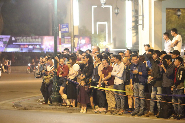 Biết tin Tổng thống Mỹ tới Hà Nội, người dân tập trung hai bên đường, cầm sẵn máy ảnh, điện thoại để ghi lại cảnh đoàn xe của ông chủ Nhà Trắng đi qua. (Ảnh TT/Tuổi trẻ)