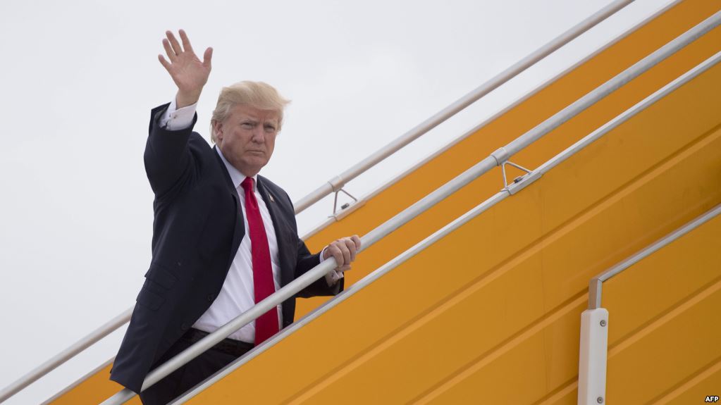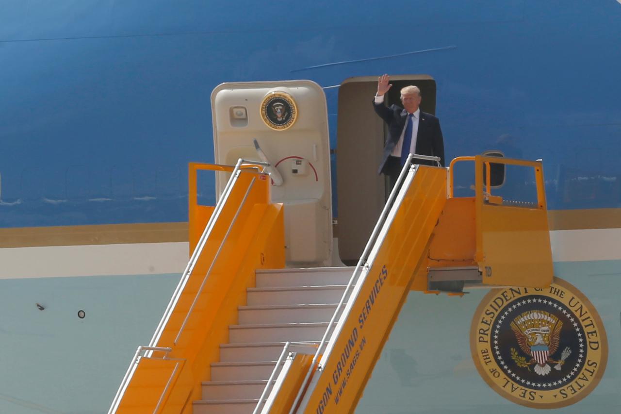 Khoảng 12h30, Tổng thống Mỹ Donald Trump lên chuyên cơ Air Force One, khép lại chuyến thăm Việt Nam. Ảnh: AFP