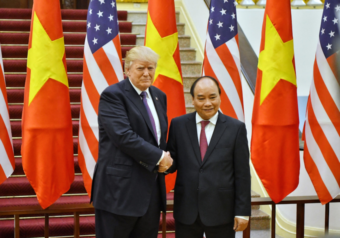 Đáp lời, Tổng thống Mỹ Donald Trump cũng khen ngợi “Việt Nam là một điều kỳ diệu của thế giới” và ông mong muốn sẽ còn gặp Chủ tịch Trần Đại Quang trong nhiều dịp khác. Bên cạnh đó, Tổng thống Mỹ không quên gửi lời chia buồn đối với những thiệt hại to lớn về người và của do cơn bão Damrey gây ra tại miền Trung Việt Nam. (Ảnh: Xuân Tùng/ Tiền Phong)