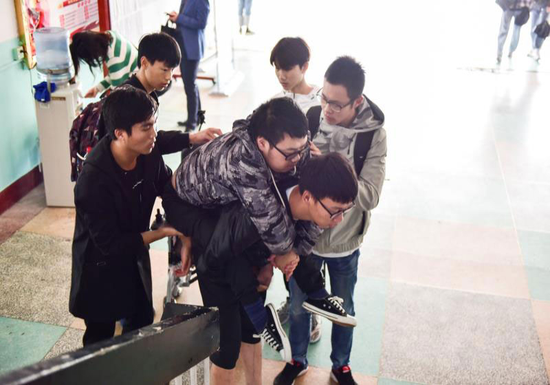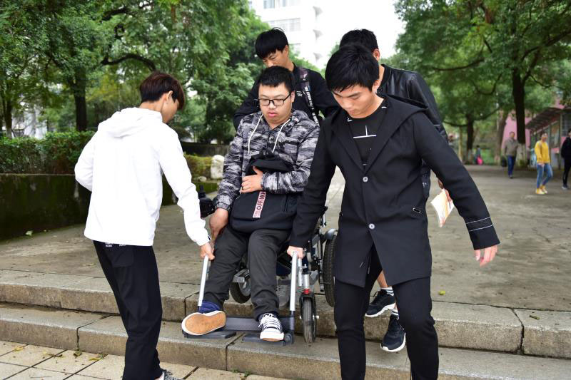 Mỗi ngày, khi Li lăn chiếc xe lăn của mình đến tòa nhà giảng dạy, một người bạn khỏe nhất trong nhóm bế cậu trên lưng, còn hai người trợ giúp và hai người mang cặp sách cùng những vật dụng khác.