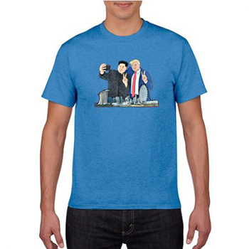 Một hãng thời trang cũng tung ra các mẫu áo phông in hình ông Trump và ông Kim mang tên “Hòa bình từ thành phố sư tử” với giá gần 30 SGD (22,5 USD) một chiếc. Khách hàng có thể đặt áo theo mẫu mình muốn và sẽ nhận được hàng sau một tuần.