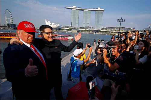 Bản sao của ông Trump và ông Kim dành được sự quan tâm của công chúng tại Singapore. Ảnh: Reuters