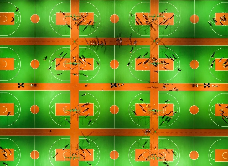 Những sân bóng rổ ở Trung Quốc nhìn từ trên cao.