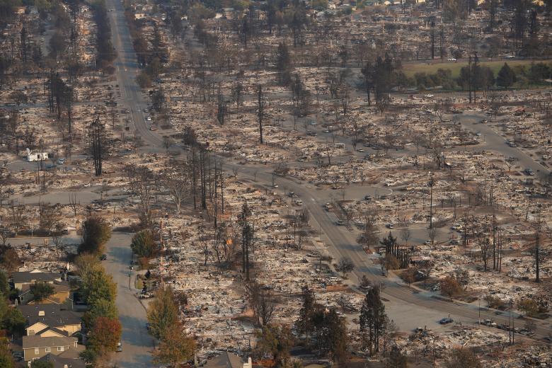 Hình ảnh chụp từ trên cao cho thấy hậu quả nặng nề của vụ cháy rừng Fire Tubbs ở Santa Rosa, California, Mỹ vào ngày 11/10.