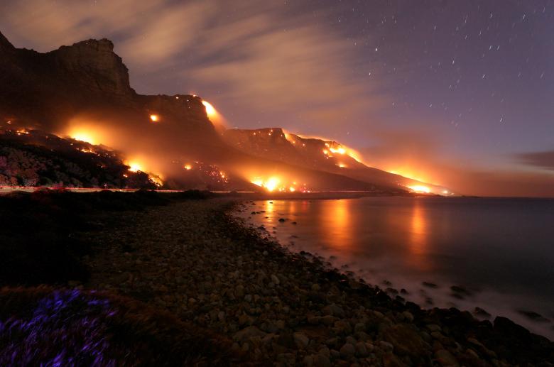 Các đợt cháy rừng chạy dọc theo khu vực Twelve Apostles thuộc núi Table ở thị trấn Cape, Nam Phi vào ngày 13/10.