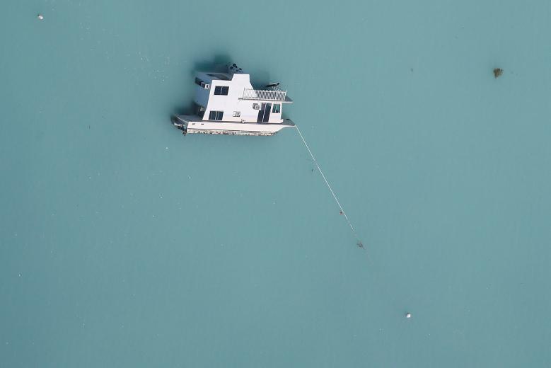 Một chiếc thuyền bị chìm được chụp lại từ trên cao ở Marathon, Florida, Mỹ ngày 13/9.