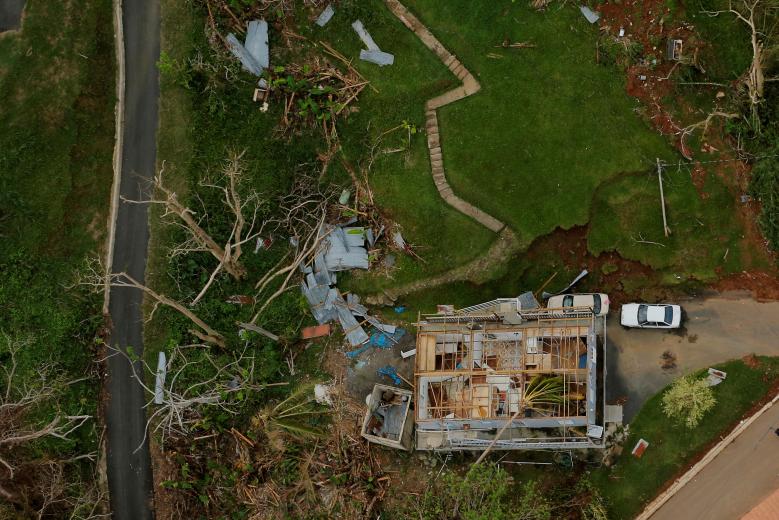 Ngôi nhà bị tốc hết mái sau khi cơn bão Maria đổ bộ vào gần thị trấn Comerio, Puerto Rico, Mỹ ngày 7/10.