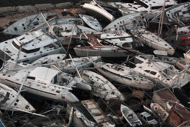 Những chiếc thuyền bị phá hủy bởi cơn bão Irma, ảnh chụp từ máy bay ở Sint Maarten, Hà Lan vào ngày 11/9.