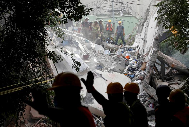 Lực lượng cứu hổ đang cật lực tìm kiếm nạn nhân trong đống đổ nát sau trận động đất ở Mexico ngày 20/9.