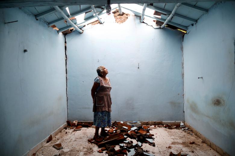 Tomasa Mozo (69 tuổi) đang trầm ngầm nhìn lên mái nhà bị phá hủy sau trận động đất ở San Jose Platanar, Mexico vào ngày 28/9. Ngôi nhà bị hư hại nghiêm trọng nhưng may mắn là họ đã di tản được một số đồ đạc. Hiện tại bà đang sống ở một nơi khác và hi vọng ngôi nhà được sửa càng nhanh càng tốt. “Tôi sợ đi ra ngoài, tôi không thể ngủ được”, bà Môz nói.