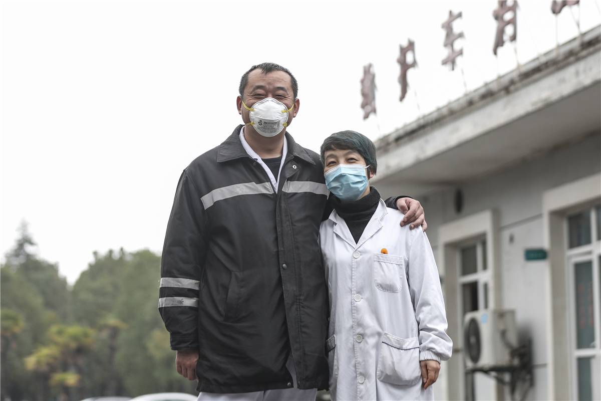 Ngày thường, Huang và Zhang công tác tại hai khoa khác nhau trong bệnh viện nên hiếm khi gặp gỡ trong lúc làm việc. Từ ngày dịch bệnh bùng phát, họ đã hợp sức chống lại virus corona. Muốn cho nhau thêm sức mạnh, cặp đôi viết tên bạn đời lên áo bảo hộ của mình, để mỗi khi kiệt sức vẫn có cảm giác người ấy đang bên cạnh. Hai cô con gái của họ nay đã lớn khôn và có gia đình nhỏ của riêng mình.