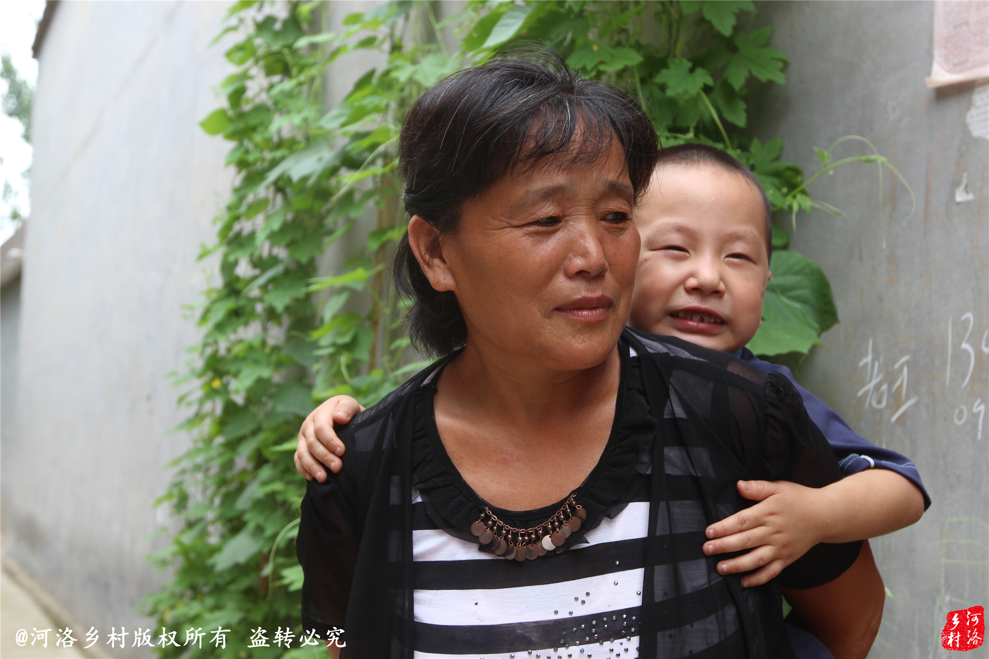 Bà Trương Thụy Lệ đang cõng đứa cháu nội.