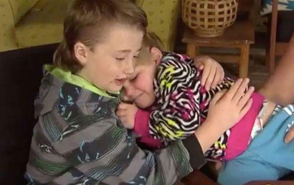 Cậu bé Matty đang ôm bé Willow - người mà Matty liều mình lấy thân che chắn khỏi sự tấn công của chó Becgie.