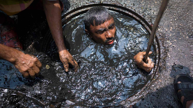 Ông Idris - một công nhân dọn cống ở Bangladesh.